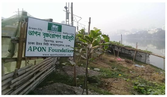 Plantation near Gulshan Lake by APON Foundation in collaboration with slum dwellers (Source: Authors).