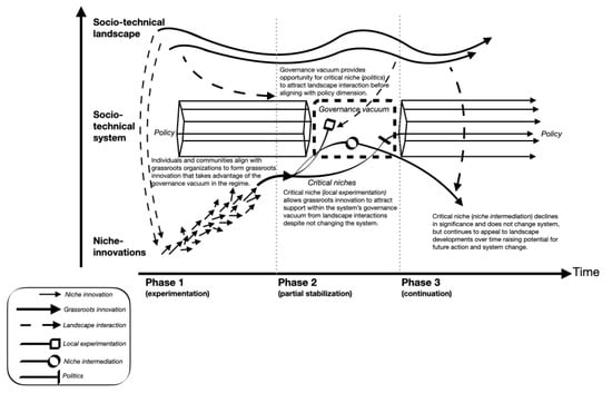 - Seyfang, G.; Longhurst, N. Desperately seeking niches: Grassroots innovations and niche development in the community currency field. Glob. Environ. Chang. 2013, 23, 881–891. [Google Scholar] [CrossRef]