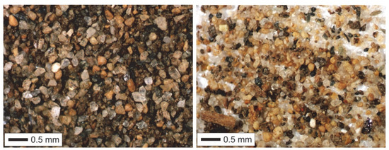 Previous studies have shown that the tailings of the surface layer are characterized by the predominance of fractions with a grain size of −0.5 + 0.25 mm and −0.25 + 0.1 mm, which in total account for 70–80% of the mass of the tails. The predominant mineral of the tailings is nepheline, which exceeds 50% of the content. The tailings also contain aegirine, feldspars, secondary minerals for nepheline, apatite, titanite, magnetite, and micas [26].