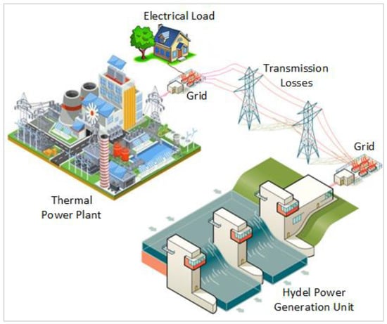 The teaching-learning-based optimization (TBLO) algorithm was used by Roy [15]. The algorithm was tested on three test cases: without prohibited discharge zones, with prohibited discharge zones, and with prohibited discharge zones and valve point loading effect. The cuckoo search algorithm (CSA) was employed by Dubey et al. [16] and tested for the aforementioned three test cases. An improved version of CSA was applied by Nguyen et al. [17]. The clustered adaptive teaching-learning-based optimization (CATLBO) algorithm was utilized by Salkuti [18] to solve STHTS. Haroon et al. [19] applied the evaporation rate-based water cycle algorithm (ERWCA) to hydrothermal coordination problems and compared the results with other techniques. Ghosh et al. [20] applied the hybrid bat algorithm (BA) with an artificial bee colony (ABC) to solve the STHTS problem. This hybridization comprises agents’ exchange policy between the two algorithms. The worst agents of bat algorithms are replaced by better agents of ABC and, on the other hand, the poor agents of ABC are replaced by good agents of BA. Yan et al. [21] used the improved proximal bundle method (IPBM) within the framework of Lagrangian relaxation for STHTS, which incorporates the expert system (ES) technique into the proximal bundle method (PBM). Alshammari et al. [22] utilized the non-dominated sorting particle swarm optimization technique to solve the economic dispatch problem with wind power integration. An improved teaching-learning-based optimization (ITBLO) was used by Thiagarajan et al. [23] to solve short-term scheduling problems. Balachander et al. [24] solved the STHTS problem with three thermal generators using particle swarm optimization and the improved bacterial foraging (PSO-IBF) algorithm. The hydro spillage model was proposed by Sakthivel et al. to solve the problem at hand by the quasi-oppositional turbulent water-flow-based optimization (QOTWFO) algorithm [25].