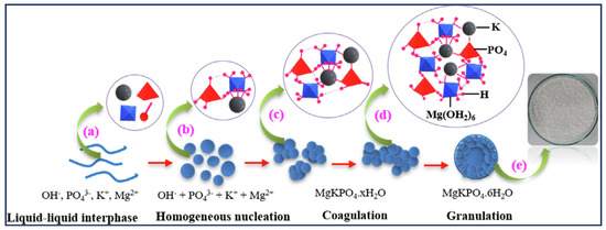 The discharge in the environment of waste and wastewater with high levels of nutrients is a matter of great concern. In fact, this practice induces negative consequences on the environment such as eutrophication phenomena. Numerous biological and physico-chemical treatments for the abatement of nutrients have been developed [1]. Among the many alternatives, a solution based on nutrient recovery and reuse is very advantageous because it promotes the development of sustainable technologies [1]. In effect, the definition of a virtuous cycle of nutrients to reduce the use of natural resources while also avoiding pollution phenomena is currently a key challenge. In this context, magnesium ammonium phosphate (MgNH4PO4·6H2O; MAP) precipitation application began some 30 years ago and research in this area is still continuing [2,3,4,5,6,7,8,9,10,11,12,13]. The impetus behind these works was that the precipitate obtained from the treatment of waste is a valuable product containing two essential elements (nitrogen and phosphorus) that can be used as a slow-release fertilizer in agronomic practices [3,14]. The other benefits of the process are protection from environmental pollution, particularly prevention of eutrophication, and a contribution to sustainability through a lesser use of phosphate resources [1]. All the above considerations apply to the case of the precipitation of the analogous magnesium potassium phosphate (MgKPO4·6H2O; MPP), which also produces a valuable substance with two fundamental elements (potassium and phosphate) for plant growth [15]. MPP precipitation is particularly advantageous because it is the only method to selectively remove, recover, and reuse potassium that has hitherto been supplied by natural resources in fertilizing activities [16].