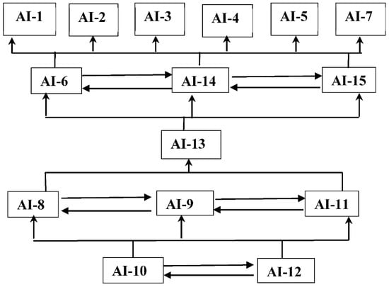 MCDM analysis has been carried out in the recent research to evaluate the AI adoption and implementation in public services, including the public distribution system []; the supplier selection for public healthcare [,]; pandemic and disaster management []; the public manufacturing sector of an emerging economy []; and smart healthcare management systems for the selection of healthcare centres []. This study applied ISM and fuzzy MICMAC to identify the existing relationships among the various artificial intelligence adoption barriers. The methods are discussed below.