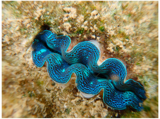 - Kakuma, S. A Guide to Release Tridacna Crocea; Okinawa Prefectural Fisheries Extension Center: Okinawa, Japan, 1989. (In Japanese) [Google Scholar]