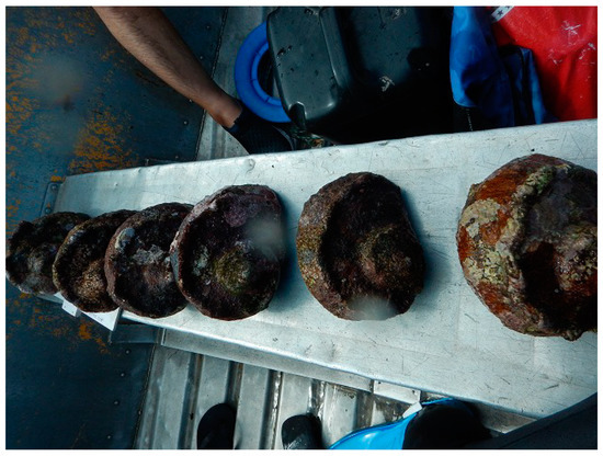In Okinawa City and Shiraho in Okinawa, a giant clam species Tridacna crocea were restocked. In Onna Village T. crocea were also restocked [14]. When the author was a fisheries extension officer, he worked with fishers in various parts of Okinawa to develop techniques for restocking T. crocea using a transdisciplinary approach. The techniques utilize the biology of the juvenile T. crocea to burrow into holes in the bedrock by drilling small holes in the bedrock with an air-powered drill and embedding the T. crocea in them. The author then disseminated the techniques to fishing villages throughout Okinawa, instructed them in the field and organized the techniques into a guide [34]. During the two-year period 1988–1989, the techniques were implemented in 12 districts of Okinawa.
