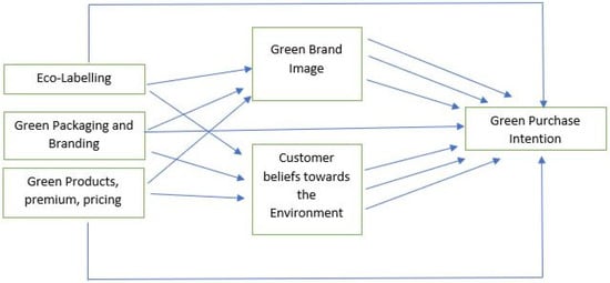 To deal with the growing environmental concerns it is very significant for marketers to investigate the aspects that influence consumer views and purchase decisions regarding a company’s offerings [16]. Values, trust/information, requirements and inspirations, attitudes, and socioeconomic factors are some of the aspects to consider [17]. Moreover, several mediating factors, such as eco-labels and customer response, impact customers’ willingness to spend extra for environmentally friendly products [18,19].