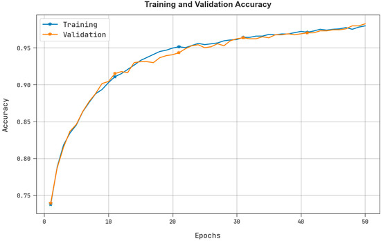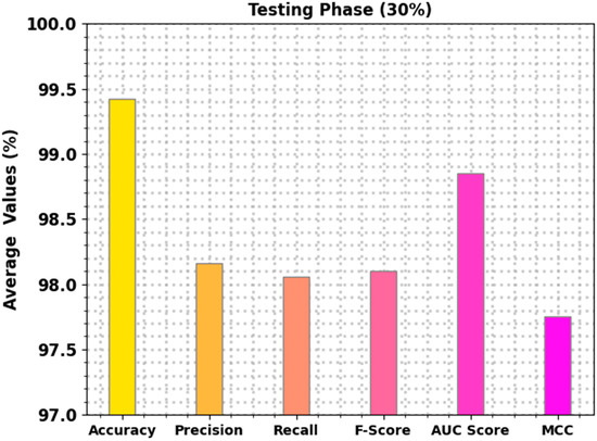 Figure 6 shows the waste classification results of the AEOIDL-SWM technique on 70% of the TR dataset. The AEOIDL-SWM system categorized cardboard samples with of 99.42%, of 98.54%, of 97.83%, of 98.18%, of 98.78%, and MCC of 97.84%. Furthermore, the AEOIDL-SWM system categorized metal samples with of 99.25%, of 97.20%, of 98.23%, of 97.72%, of 98.84%, and MCC of 97.27%. Moreover, the AEOIDL-SWM process categorized trash samples with of 99.42%, of 94.38%, of 94.38%, of 94.38%, of 97.04%, and MCC of 94.08%.