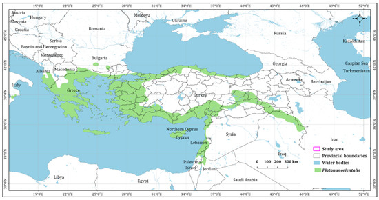 Distribution area of Platanus orientalis L (Source: EUFORGEN—2022).