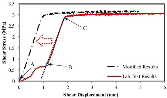 - Stage 3 (After point C): The third stage was characterized by friction sliding. In this stage, the shear stress remained stable with a little fluctuation owing to the surface roughness and damage.