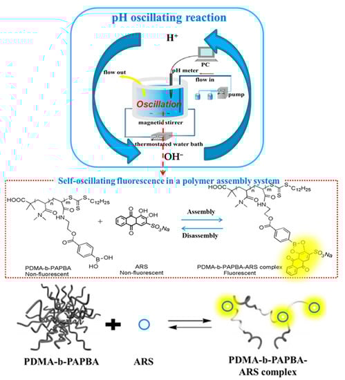 The dynamic self-assembly based on PDMA33-b-PAPBA17/ARS and pH oscillating-reaction [133].