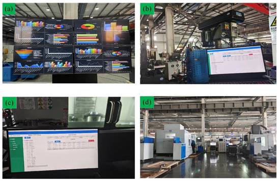 Production scene diagram of discrete manufacturing industry. (a) The workshop produces kanban boards. (b) Gear drilling machine processing process. (c) Machining process of bushing lathe. (d) Bushing lathe workshop.