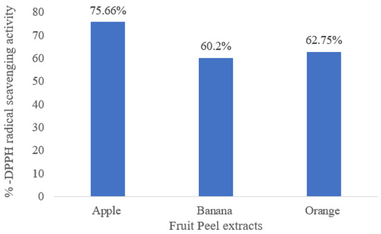 The fruit peel extracts were prepared by following the method reported in the literature with slight modifications [22]. The fruit peel powder (25 g) of each sample was soaked in 500 mL of solvent (80% and 100% acetone, ethanol, methanol) and incubated at room temperature overnight. It was stirred on a hot plate using a magnetic stirrer at 200–250 rpm at 35 °C for 3 h, filtered using Whatman No. 1 filter paper and then centrifuged at 6000 rpm for 10 min at −4 °C. The supernatant was filtered, separated, and then concentrated using a rotary evaporator. The extracts were dried up to 40 °C and stored in the refrigerator, thus preserving the phenolic compounds present in the extracts.