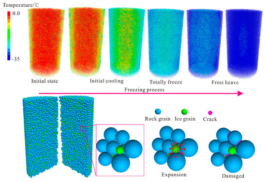 - Zhu, T.; Chen, J.; Huang, D.; Luo, Y.; Li, Y.; Xu, L. A DEM-Based Approach for Modeling the Damage of Rock Under Freeze-Thaw Cycles. Rock Mech. Rock Eng. 2021, 54, 2843–2858. [Google Scholar] [CrossRef]