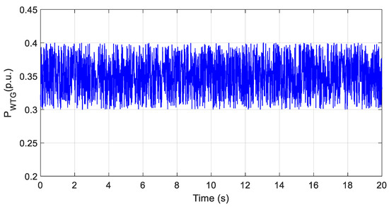 In Equations (1) and (2), and are wind turbine and time constants, respectively; is the percentage of generated power to the grid, from the microgrid. is the change in electrical power achieved from a wind turbine, and is the Changes in the power of wind. Equation (3) shows the mechanical power obtained from the wind.