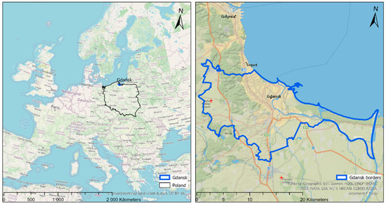 Gdansk is a city in Central Europe, in northern Poland, on the Gdansk Bay of the Baltic Sea at the mouth of the Vistula River (Figure 1). The city population is 470,621 (as of 31 December 2021) with 270,425 of working age citizens [29].