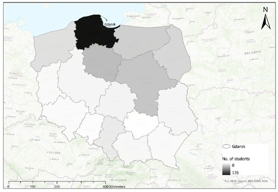 Among the factors that prompted the respondents to study in Gdansk, the education offer of the University of Gdansk was ranked first. Additionally, according to respondents, studying at the University makes it easier to find a job in the city. An important factor in favor of studying at the University of Gdansk is its proximity to their place of residence, which is also reflected in the distribution of the origin of the respondents studying at the University of Gdansk (Figure 2). This factor can be considered as important for the respondents, since 42% of them are determined to settle down in Gdansk after graduation.