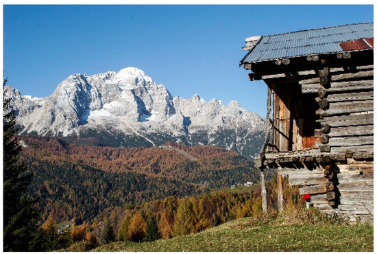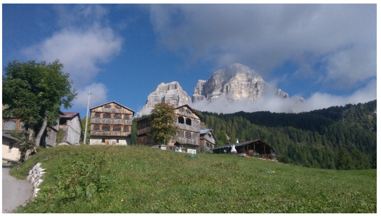 Although Zoldo suffers from depopulation issues like several other Italian rural and mountainous areas, it also offers a unique cultural and historical heritage. This territory’s history is characterized by an ancient migration of iron handcrafters who arrived at Zoldo in the Middle Age. During their stay, they built several buildings (tabià) where they led metallurgical and agricultural activities, and which became typical structures of the area (Figure 3). Today, local museums such as the Museum of the Iron and Nail testifies the long handcraft tradition of the valley.
