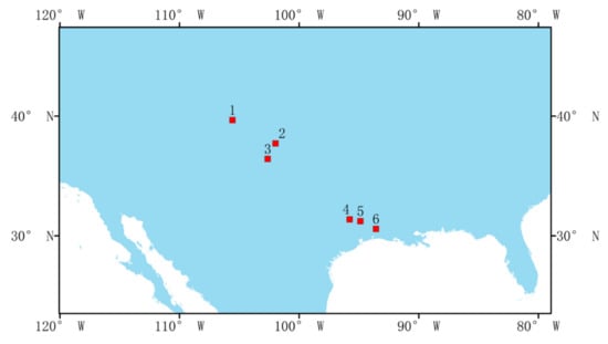 The CDL database in 2019 was used to provide data for the detailed analysis of MODIS-500 m pixels, which is helpful to understand the mixture of MODIS pixels. Since 1997, the NASS (National Agricultural Statistics Service) has implemented the CDL program, which is based on a land cover classification map (30 m) covering the United States from the USGS (United States Geological Survey). CDL strengthens the agricultural resource and is based on field surveys and samplings, with the accuracy of agricultural types ranging from 85% to 95% [] and non-agricultural types ranging from 82% to 89% []. The CDL dataset is downloaded from https://nassgeodata.gmu.edu/CropScape/ (accessed 28 March 2022).