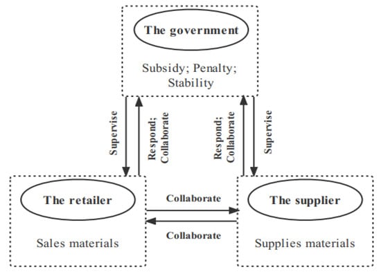 To bridge these gaps, this study explores the optimal decision-making problem of emergency supply chain collaboration based on the collaboration of the government, the retailer, and the supplier in crisis, establishing an evolutionary game model and conducting numerical simulation analysis. This also leads to the main contributions of this study: (1) Considering that the emergency collaboration in the supply chain cannot be separated from the government’s supervision measures, this study will examine the government’s supervision strategies in different crisis phases. (2) This study will explore the factors that influence emergency collaboration among supply chain enterprises and find a reasonable range of key factors. (3) In terms of modeling methodology, we develop a tripartite evolutionary game model including the government, the retailer, and the supplier, which will better investigate the issue of sustainable emergency collaboration between the government and supply chain enterprises.