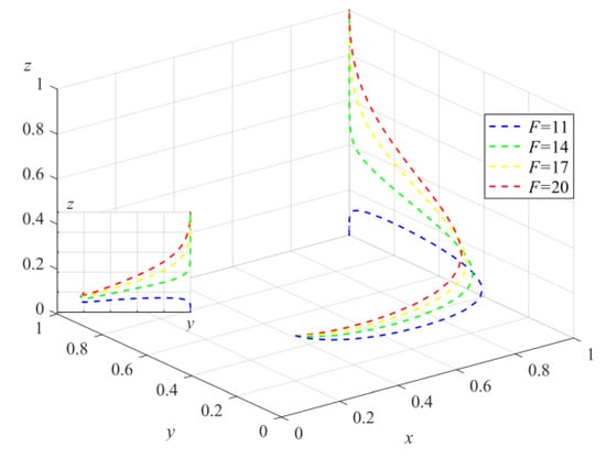 When and , the government has a stable probability of response strategy choice. If , and , indicating that any strategy chosen by the government is stable. If , let , then we get two stable points and . To determine the positive and negative values of and , we construct an auxiliary function based on Equation (4), and then let .