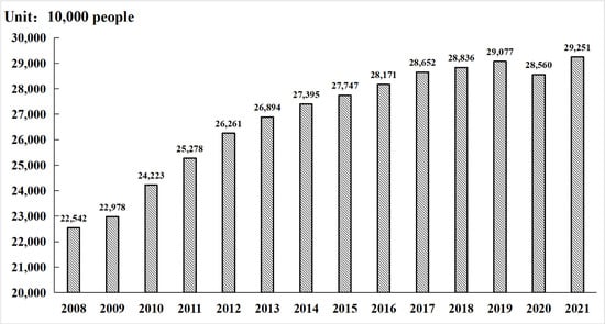 - National Bureau of Statistics in China. 2021. Available online: http://www.stats.gov.cn/english/ (accessed on 17 May 2022).