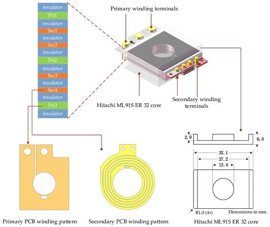 - Lu, S.Z.; Kong, D.Y.; Xu, S.; Luo, L.L.; Li, S.Q. A High-Efficiency 80-kW Split Planar Transformer for Medium-Voltage Modular Power Conversion. IEEE Trans. Power Electron. 2022, 37, 8762–8766. [Google Scholar] [CrossRef]