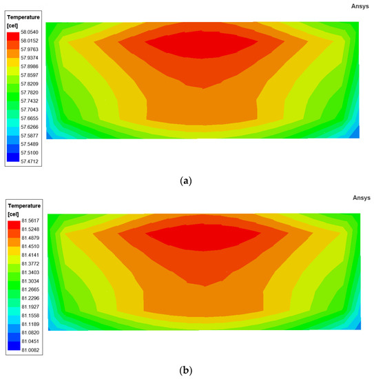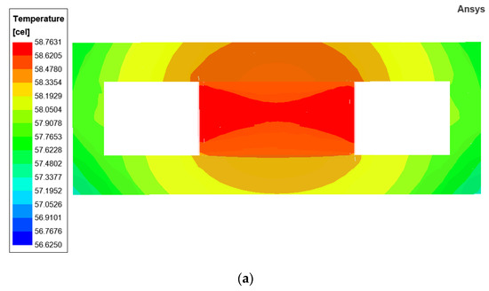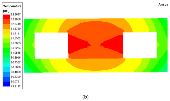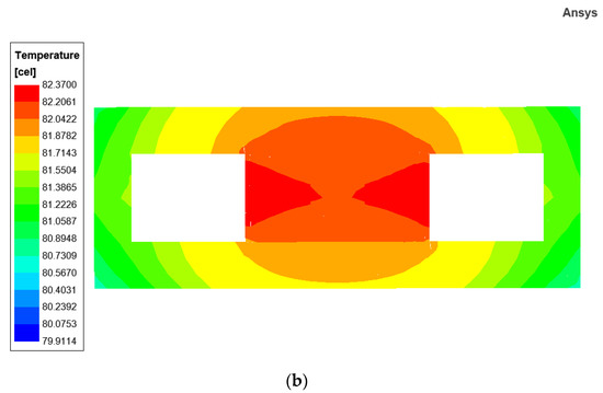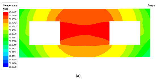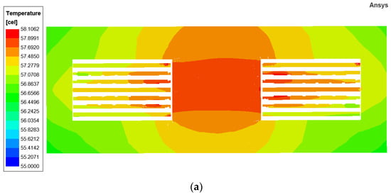 Modify the model parameters according to Section 3.2, and the parameters used in the simulations are presented in Table 8. The thermal simulation results obtained are shown in Figure 10.