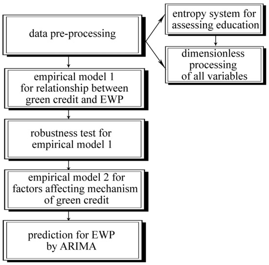 This paper is composed of seven main sections. There is a literature review in Section 2. Following the literature review, Section 3 will show the data, and Section 4 will evaluate the EWP in China. Moreover, two econometric analyses and a time series analysis are conducted to identify the relationship between green credit and EWP, factors affecting the mechanism of green credit, and the forecast of EWP in Section 4. In Section 5, we will explain the computational method. Section 6 presents the results of Section 3. In Section 7, we will give a conclusion.