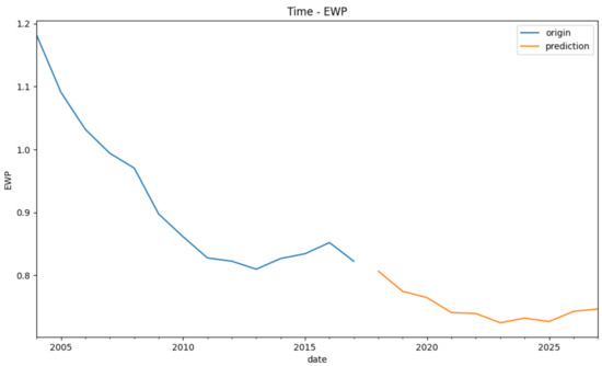 We try to predict the EWP when we continue issuing more green credit. Assuming that the current scale of green credit issuance in China is increasing yearly and is proportional to time, we will use time instead of green credit in the subsequent predictions, which can also illustrate the direction of EWP when more green credit is issued.