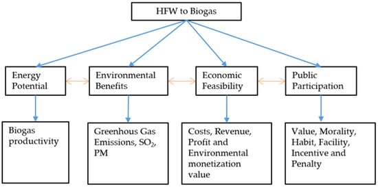 Moreover, a sustained supply of high-quality HFW is only the starting point, as there are several other factors at play. In a recent cross-country review, De Clercq et al. [3] analyzed the national status of food waste conversion to bioenergy via anaerobic digestion (AD) in seven countries and identified various regulatory, financial, technical, and managerial barriers. Poor source separation, insufficient financial support, misplaced subsidy, lack of standards, supervision and performance evaluation, and weak government coordination were proposed as major challenges faced across regions. Translated to the project level, this suggests that the success of an HFW-to-biogas practice lies in the smooth circulation of material, value, and information in a given social and economic setting. The collected HFW must be transported to an AD facility of a suitable scale with technical proficiency to achieve acceptable productivity [4,5]. The products, biogas and digestate, must meet respective quality standards to enter the open market [2] or be disposed of in proper ways to cause minimal environmental burden [6]. Thus, the material flow of “consumers–HFW–biogas and digestate–consumers” is closed. In this process, various service providers perform tasks like HFW collection, transportation, and disposal, whose economic viability must be ensured. Indeed, the high initial capital cost required to establish a commercial-scale biogas plant is often a major barrier to potential investors [7]. Sufficient financial incentives like subsidies and service fees may help to overcome such barriers [8]; however, the stable sale and proper pricing of these products might be more vital to sustaining a healthy cash flow [9]. Again, this depends on the public acceptance of the arrangement of the AD plant, its products and their usage, the respective subsidy/fees, and the overall scheme of HFW reutilization. To achieve such acceptance, dedicated social campaigns might be needed to engage the public, and proper feedback should be given in the long run to sustain its support.