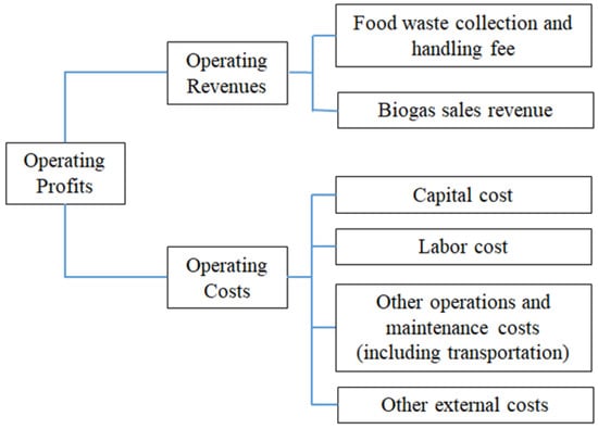 A cost-benefit analysis was adopted to outline the economics of converting HFW to biogas along the value chain in the Vafab enterprise. Figure 2 shows the structure of the operating costs and revenues of the “HFW-to-biogas” project, while the data used for calculations are from the 2017 annual report of Vafab [21].