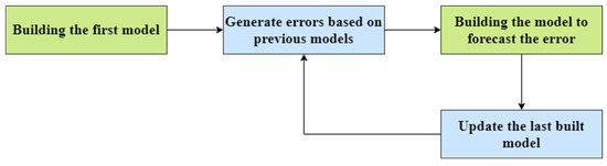 Figure 7 shows the operation of the extreme gradient boost model. It repeatedly builds new models and combines them into an ensemble model. Initially, it builds the first model and calculates the errors for each observation in the dataset. The extreme gradient boost algorithm is superior compared to the gradient boosting algorithm, since it offers a good balance between bias and variance. Gradient boost works by building a tree based on the error from the previous tree. It scales the trees and then adds the predictions from the new tree to the predictions from the previous trees.