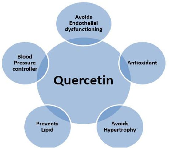 Figure 1 shows some actual health benefits of quercetin found in onion peel. The strategy through which quercetin exhibits its cardioprotective impacts is unknown [36].