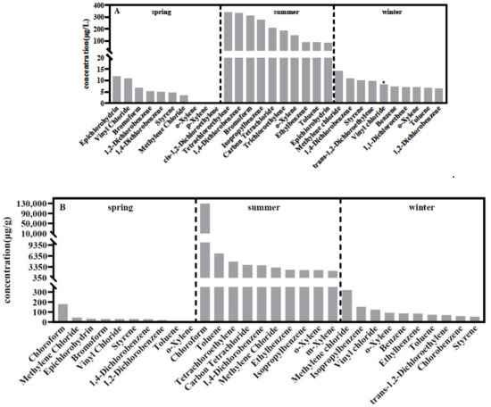 - Yamamoto, K. Occurrence, distribution, and trends of volatile organic compounds in urban rivers and their estuaries in Osaka, Japan, 1993–2006. Bull. Environ. Contam. Toxicol. 2014, 92, 472–477. [Google Scholar] [CrossRef] [PubMed]