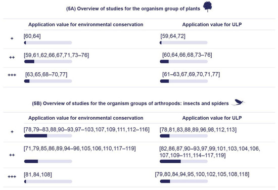 Figure 5. Overview of all studies with assigned application values for environmental conservation and ULP. See the text for details.