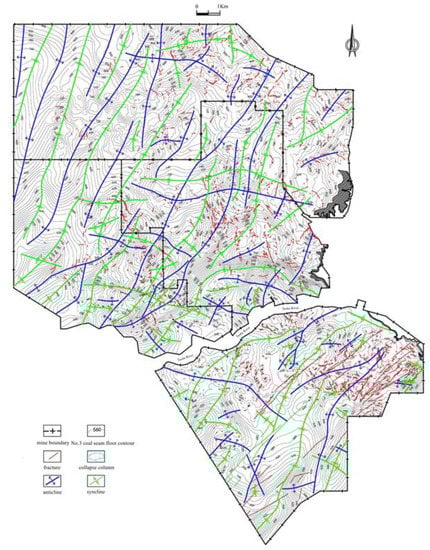 Fracture and fold are the main geological structures that affect the safety of mine production. The comprehensive evaluation of the structural complexity of the mining area is of great significance for safe mining, high yield and efficiency and optimization of production deployment [1,2,3]. In the present circumstances, the comprehensive evaluation of the complexity of structural development can only achieve the quantitative description of a single factor. It cannot reflect the complexity and the variation trend of the structure in general [4,5,6,7]. In particular, the complexity of the structure can only be qualitatively described in areas where multiple structural forms coexist.
