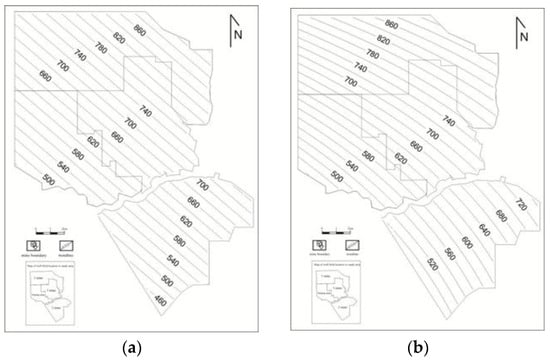 By comparison of two graphs, the distribution of isolines in two graphs has obvious similarity. On the whole, the curvature values in the western and northern regions are generally small, and the variation range is not large. The maximum curvature is concentrated in 0.00005, and the minimum curvature is concentrated in −0.005. The contour lines are relatively sparse, and they are distributed in strips. The variation range of the eastern curvature value increases significantly. The maximum curvature of some regions is as high as 0.00025, and the minimum curvature is as low as −0.00025. The overall maximum curvature and minimum curvature in the south have little change, and the curvature value is similar to that in the northwest. However, the maximum curvature and minimum curvature in the southeast region have obvious changes. The maximum curvature in the local region can reach 0.00045, and the minimum curvature can reach −0.0004.