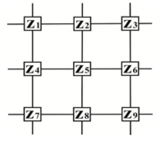 When calculating the curvature of a certain point, the local quadratic surface is fitted by the least square method and the 3 × 3 mesh unit is used for approximation, as shown in Figure 4. According to the definition of the first and second derivatives in calculus mathematics, the coefficients in Equations (7)–(13) are obtained: