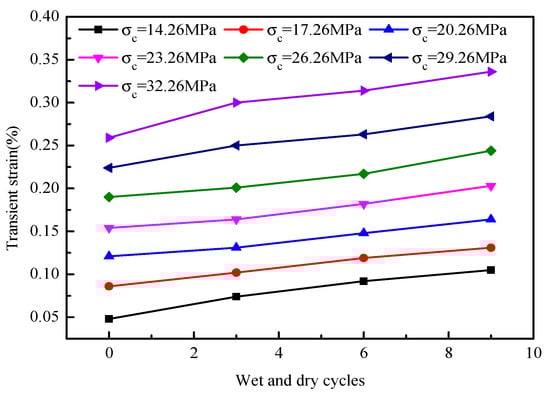 - The transient strain, viscoelastic creep, and viscoplastic creep of carbonaceous mudstone increased with the number of dry and wet cycles, and the creep failure stress decreased. Therefore, the dry and wet cycles intensified the development of creep in carbonaceous mudstone and accelerated the creep failure of the rock.