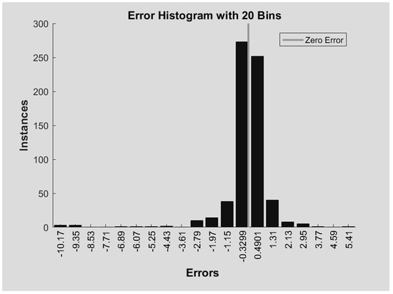 Figure 1 shows that more than half of the data have error values in the range of −0.33 to 0.49 and are distributed on both sides of the zero error. Within the margin of error, this comparison is in line with the expected effect of this study, and the entire neural network construction is suitable for the sample data of this study.