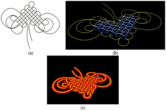 41. Zhang, L.; Peng, J.; Liu, X. Rapid design for 3D structures of typical knot art products. J. Comput. Aided Des. Comput. Graph. 2011, 23, 298–304. [Google Scholar]