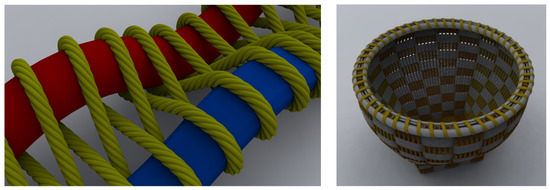 Most literature studies of bamboo basketry design tools have focused on automatic modeling of basically cross woven structures, rarely exploring basketry patterns, such as Stout’s Celtic interwoven pattern generated with 2D design tools [67]. The weaving skills necessary to make bamboo baskets very rich, involving dozens of high-quality exquisite structures [32], which seldom appear in the technical literature. Tools for innovation (not just for demonstration) remain in the initial stage of development.