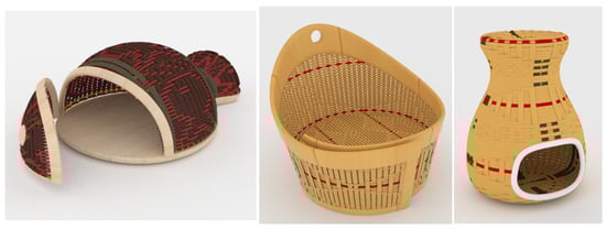 For ICH products comprising visual patterns, such as batik or embroidery, painters can be invited to draw the pattern, and they do not need to know the manufacturing details. However, the drawing of bamboo baskets is difficult [69] due to the complex and diversified weaving structure details. The exact painting of woven products is not easy, even for professional painters, so the design scheme has to be completed and stored in the mind of the craftsmen.