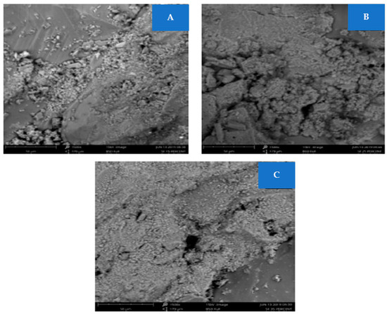 Scan electronic microscopy (A): 15%, (B) 25%, and (C) 35% SF [56]: (Open Access Source).
