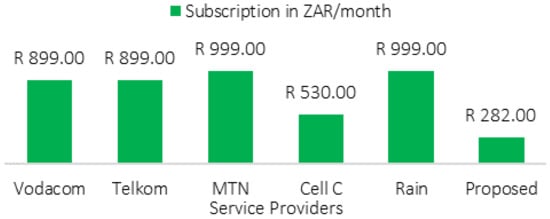 - Fin24. MTN, Vodacom Charging Up to 2 639% More for Out-of-Bundle Data—Report. 2018. Available online: https://www.news24.com/Fin24/mtn-vodacom-charging-up-to-2-639-more-for-out-of-bundle-data-report-20180312-2 (accessed on 28 June 2022).
