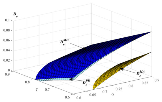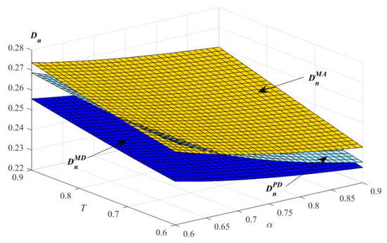 Proposition 3(2) and 3(3) indicate that, when the product failure probability satisfies some conditions, with the increase in the extended warranty coverage, the optimal demands of the products and extended warranty in the three models all increase. Due to the fact that, with the increase in the product failure probability and extended warranty coverage, the wholesale and retail prices of the products increase, from the perspective of consumers, with the increase in the prices of the products, the utility of purchasing the products decreases in the three models, while the demands of the extended warranty increase in the three models. Consumers will purchase more extended warranty with the increase in the product failure probability and extended warranty coverage in order to obtain more out of the products.