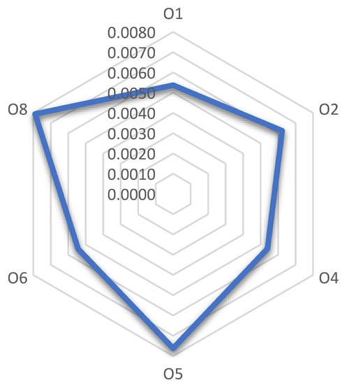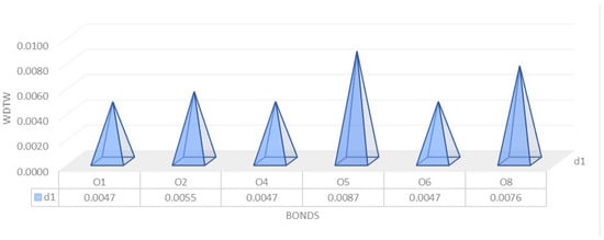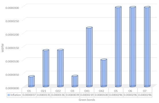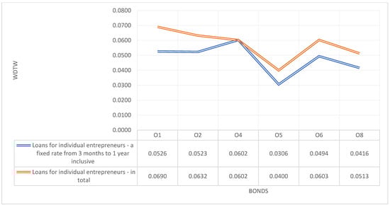 The evolution of the profitability of green bonds in Poland is related to the formation of deposits with a maturity exceeding 1 month, up to 3 months inclusive. The WDTW ratio is low, and it can therefore be concluded that the development of these two indicators is similar. The strongest influence is visible for the bonds O1, O4, and O6. These bonds were also most strongly associated with deposits with an original maturity up to and including 1 month (Figure 24).