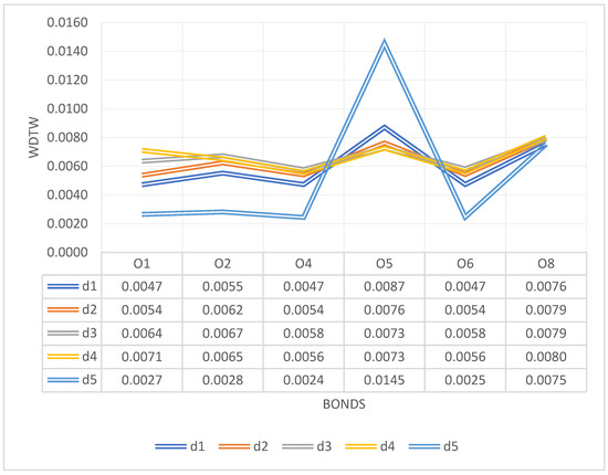 The value of the WDTW ratio in the short term between the profitability ratio of individual green bonds and deposits (analysis for Poland). Source: Own calculations.