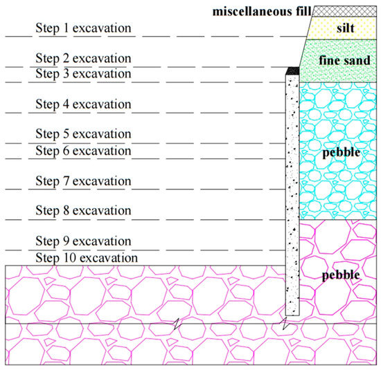 - Liu, W.Z.; Li, T.X.; Wan, J.L. Deformation Characteristic of a Supported Deep Excavation System: A Case Study in Red Sandstone Stratum. Appl. Sci. 2022, 12, 129. [Google Scholar] [CrossRef]