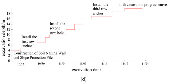 - Xiao, Z.; Li, M.; Wang, D.; Chen, J. Test and Analysis of Deformation Characteristics of Deep Foundation Pit in Residual Soil Under Rainfall. J. Shanghai Jiaotong Univ. 2020, 54, 873. [Google Scholar]
