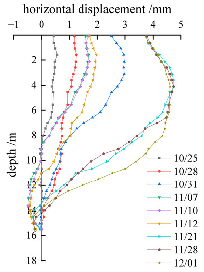 - The maximum horizontal displacement of the supporting pile was less than the design value, and the maximum horizontal displacement was not at the top of the pile.